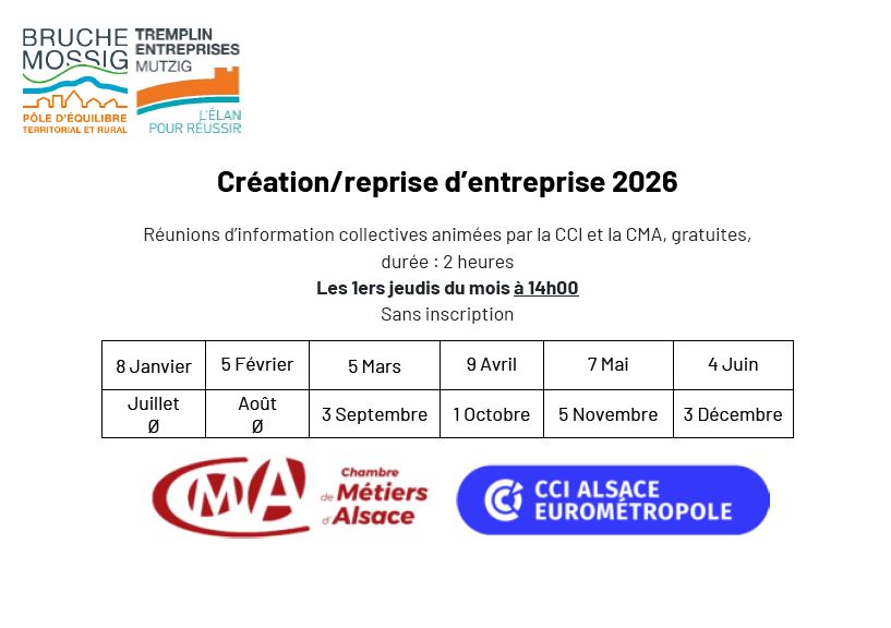 Réunions d’information collective « création-reprise d’entreprises » CMA-CCI – Planning 2026